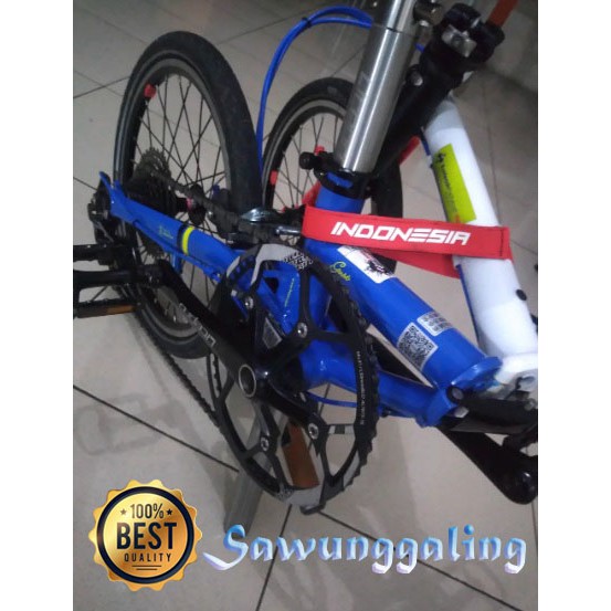 Sepeda lipat brompton yang menggunakan komponen titanium pada bagian fork depan mudguard dan frame belakang.