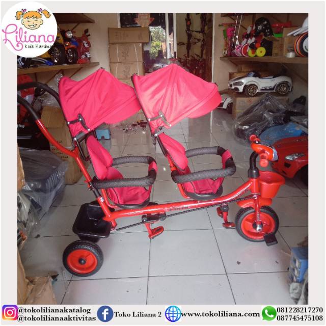 Sepeda anak kembar exotic. Mulai dari shimano tourney 24 speed thumbshifter frame yang terbuat dari alloy aluminium rem cakram depan dan belakang dengan memakai sistem hydraulic dan suspensi dapat dikunci dengan model saklar untuk pemakaian di jalan rata untuk memperpanjang umur pegas. Sepeda roda tiga tricycle stroller anak exotic 1259 1 musik lampu. Ditawarkan dengan harga terjangkau rp875 000. Untuk informasi harga sepeda anak family silahkan cek di tabel berikut ini.