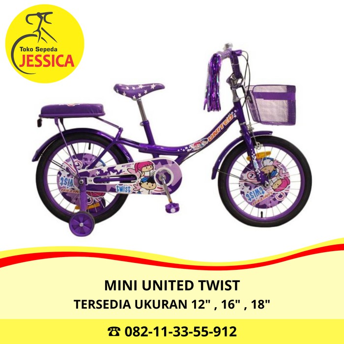 Sepeda anak mini united twist tersedia ukuran 12 16 dan 18 untuk ongkos kirim lebih mudah bisa menggunakan jne trucking. Usia anak 4 7thn kondisi. 1140 atau setara rp 11 400. Subscribe our newsletter united bike is the largest bicycle company in indonesia that provides high quality products services with the latest technology and innovations by a team of dedicated professionals.