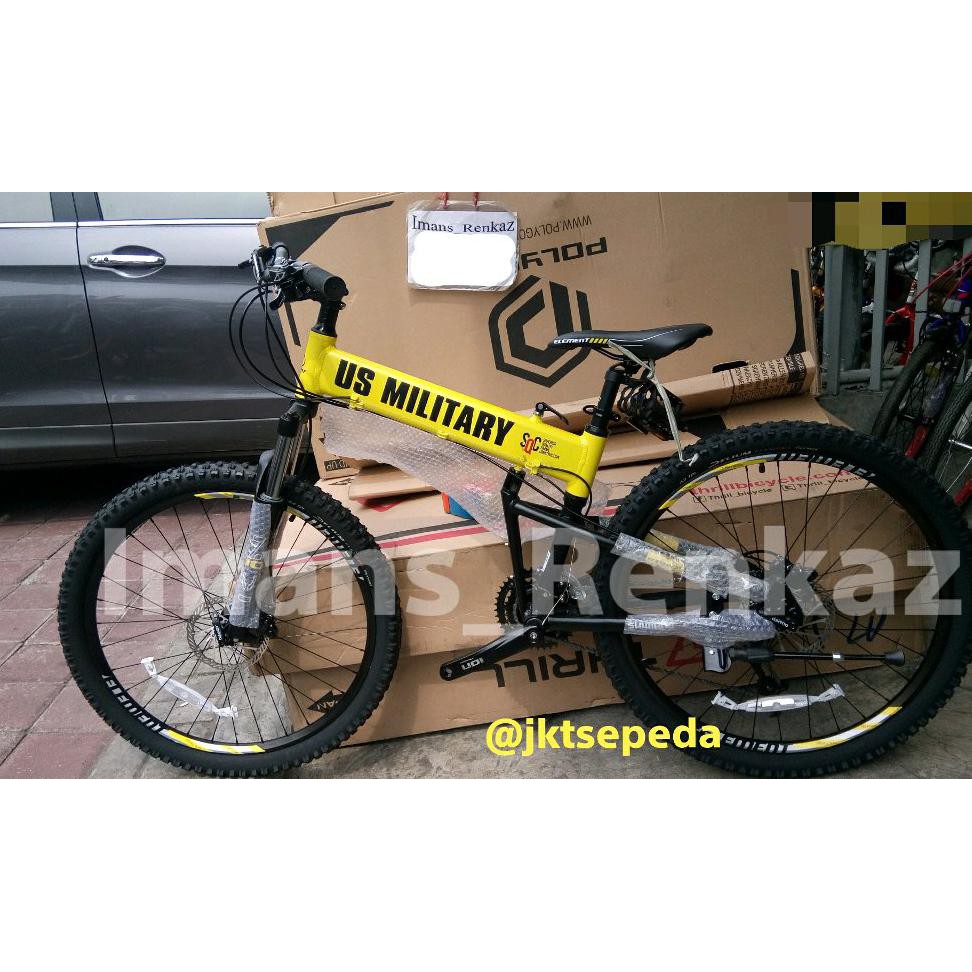 Element us military sepeda mtb lipat 26 inch rp9 100 000 3. Barang 100 original kemasan pabrik ber sni dan bergaransi resmi 5 tahun khusus rangka sepeda frame. 3 950rb sepeda lipat ring 26in ini mempunyai spesifikasi yg lumayan komplit dan simple dibawa2nya. Element us military mtb 26 folding pusat sepeda mtb roadbike beserta asesorisnya termurah gunipedrosa segala sesuatu tentang sepeda mtb maupun roadbike.